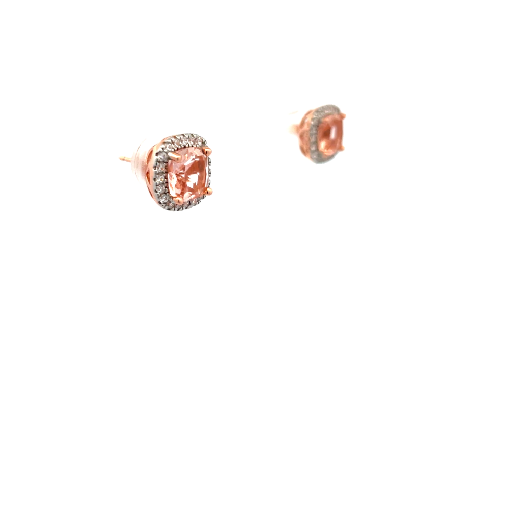 Aros de plata 925en tono rosé, salmón, con piedra cubic grande rosa y con detalle en los bordes de piedreas cubic blancas.